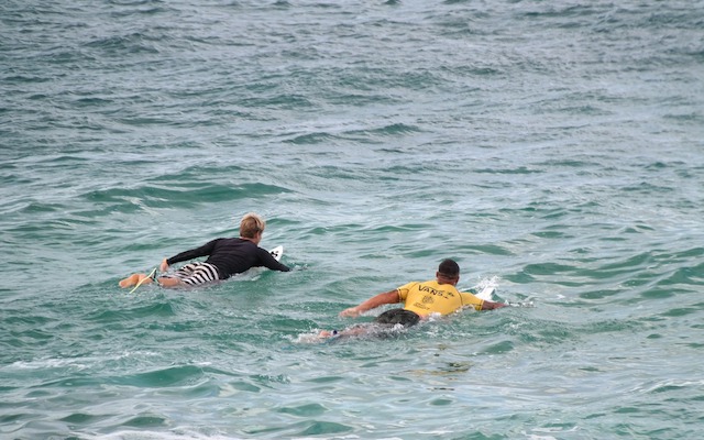 これらどの波に乗るにも まずはパドリングして沖に出て行きます。